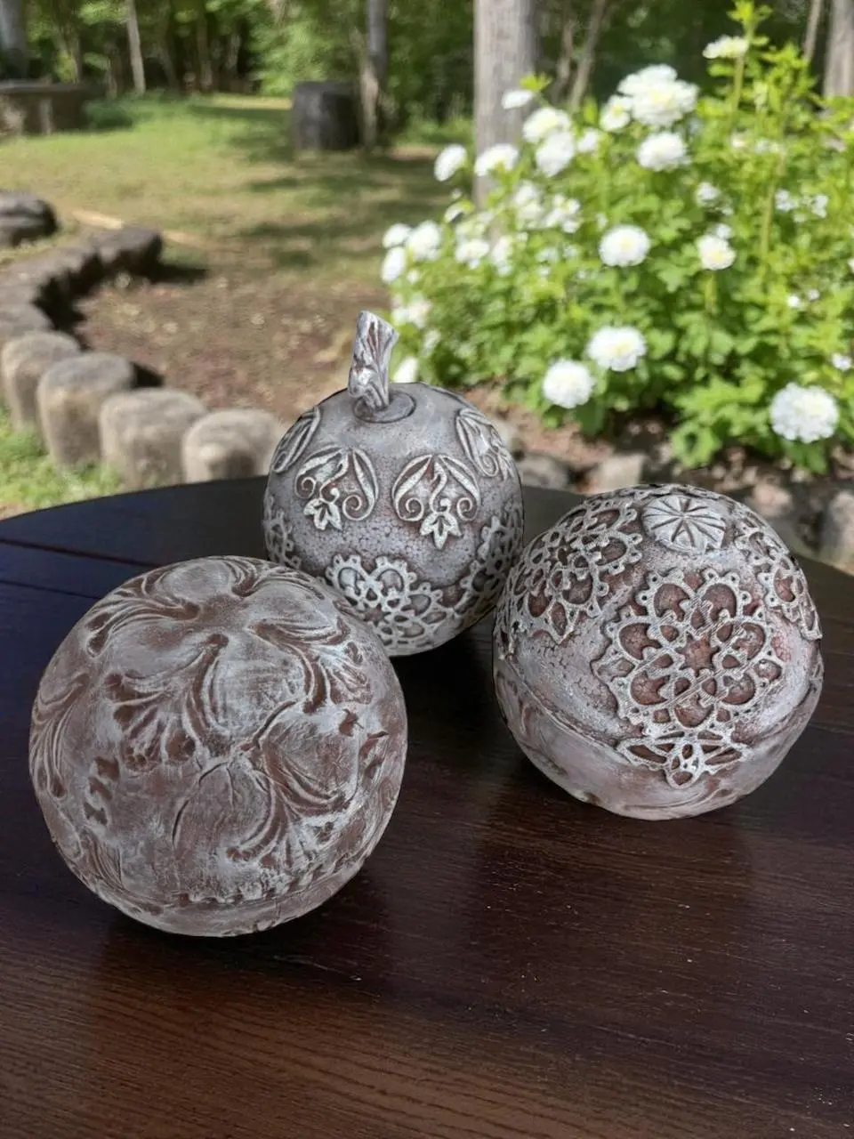 Set x 3 esferas decorativas realizadas con porcelana fría.
